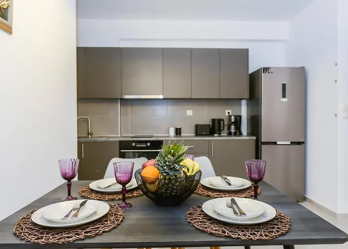 Cet immeuble comprend un balcon, une terrasse et un salon avec une climatisation pour un plus grand confort. L'appartement compte 2 chambres à coucher. Les propriétés Katerina & Stefanos Family Apartments est équipé d'une salle de bains dotée des serviettes. Une douche à l'italienne sont également disponibles.